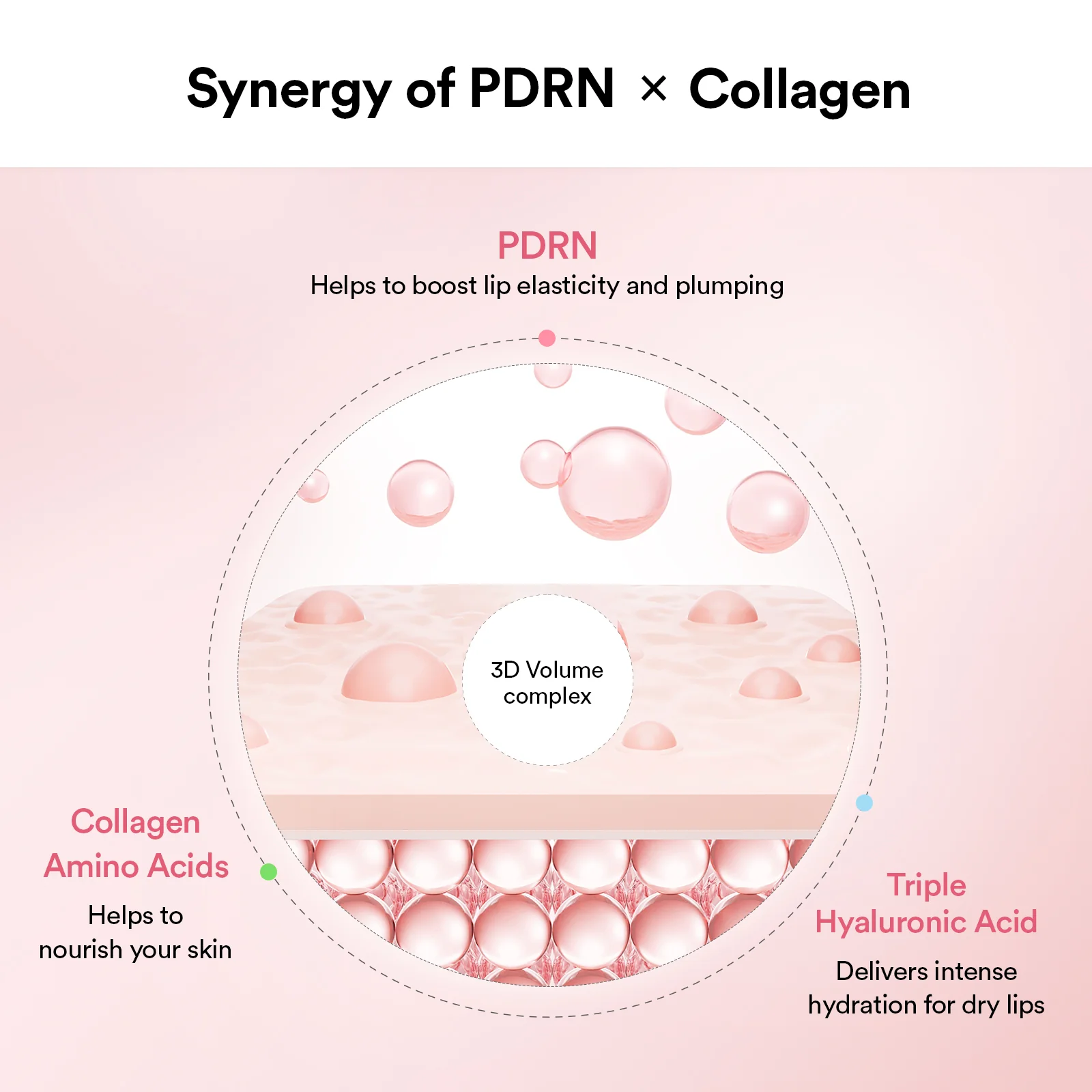 Ultra-fine molecules that instantly plump and firm the lips for a fuller appearance.