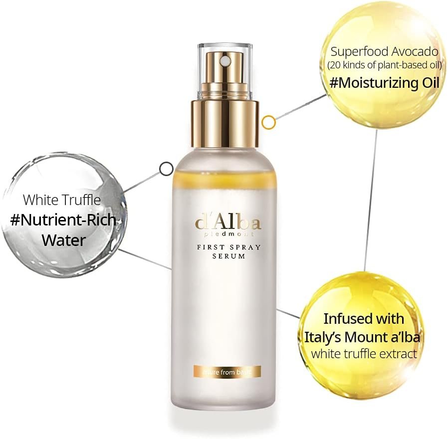 The d’Alba White Truffle First Spray Serum is a global best-seller and cult-favorite multifunctional mist that acts as a serum, toner, and makeup setting spray. Utilizing a dual-phase oil and water formula, it provides instant “glass skin” radiance and deep hydration with its signature Trufferol™ complex.