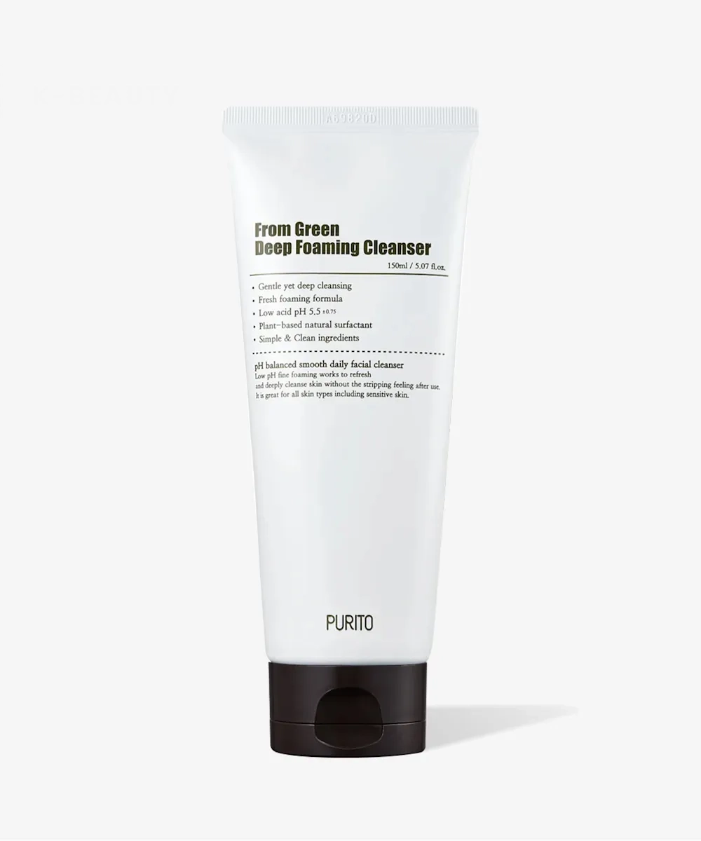 The PURITO SEOUL From Green Deep Foaming Cleanser is a gentle, low-pH foam cleanser that purifies with a soft, rich lather. It is designed to remove impurities, excess sebum, and makeup residue without stripping the skin, leaving your complexion feeling fresh, hydrated, and perfectly balanced.